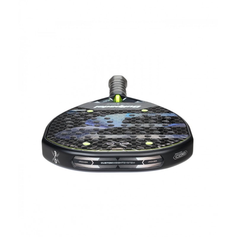 La clave radica en la capacidad de maximizar la fuerza generada por el movimiento del jugador. A través del balance de la pala, la distribución del peso se ha situado en una posición superior, llevando el peso hacia el extremo de la cabeza. Para ello se ha creado un marco más ancho en las posiciones de las 2 y las 10 horas aumentando el área de contacto con la pelota, lo que produce un mayor ángulo de lanzamiento.